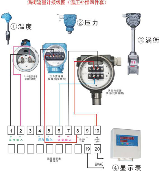 2、溫度補(bǔ)償一體型渦街流量計(jì)還帶有溫度傳感器,可以直接測(cè)量出飽和蒸汽的溫度并計(jì)算出壓力,從而顯示飽和蒸汽的質(zhì)量流量。