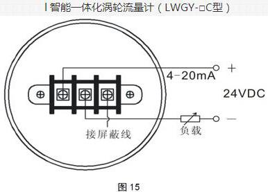 一體化渦輪流量計(jì)傳感器4-20mA兩線(xiàn)制的一般是這樣的:4-20mA輸出端的+接上24V+;4-20mA輸出的-接您設(shè)備的4-20mA輸入端+,4-20mA輸入端-接24V-端接線(xiàn)方式