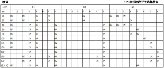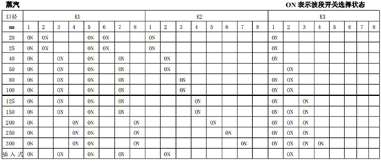 (4)標況流量計算公式,單位 t/h:四、AMPKP09A01 放大板波段開關調整參照表五、AMPSW10A01 放大板波段開關調整參照表RG=1-F 調放大器增益,由 1 至 F 依次增大(常用 4-8);RS=1-F 調觸發(fā)靈敏度,由 1 至 F 依次提高(常用 4-8)不同口徑和介質開關選擇參見附表。并根據(jù)實際信號先調整 K2 和 K3 擴展頻帶,必要時調整 K1 電荷放大器增益以上表值僅供參考,實際使用中因液體粘度和氣體密度不同應在此值附近調整,頻率低時可將 K3 向大口徑方向調一至三檔。頻率高時可將 K2 向小口徑方向調一至三檔。訂貨須知及選型樣譜一.尊敬的用戶,當您要選用本公司產(chǎn)品時,請仔細閱讀選型樣本,并做好以下工作:1.認真核對被測介質的工況條件:溫度、壓力、管徑等工藝參數(shù)。2.認真核對被測介質的使用流量范圍,特別是*小流量值以*終確定使用儀表的口徑及配管參數(shù)。3.確定儀表的安裝地點,保證直管段,并為儀表的安裝維護創(chuàng)造好的環(huán)境條件。4.填好訂貨咨詢單,見附表三二.渦街流量儀表選型表(符合 JB/T9294-1999 標準)1.傳感器選型表上一篇:污水流量計的種類