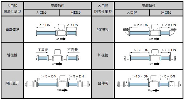 管路必須完全充滿液體。保證管路始終充滿液體至關重要,否則流量顯示會受到影響,而且還會出現(xiàn)測量錯誤。管路結構的設計必須要保證測流管始終充滿流體。當流體有分流或含有固體顆粒沉淀物時,建議使用垂直安裝。但采用垂直安裝時,要遵循流體從下到上的走向,以保證管路充滿流體。